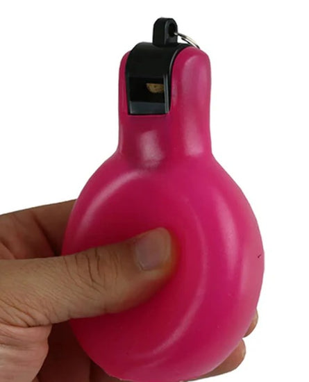 Instead of having to use your breath to create the sound, this whistle is hand operated, producing noise by just simply squeezing it.