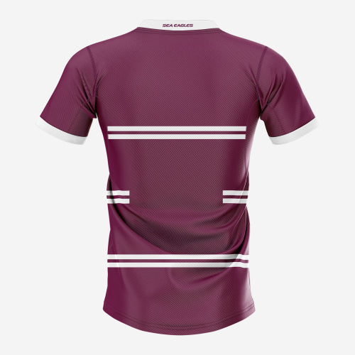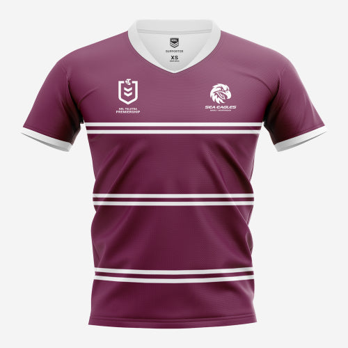 Back your Manly Sea Eagles with the 2025 NRL Replica Jersey. Made from 100% polyester, it showcases the team and NRL logos with a sleek, sublimated design. Whether for game day or casual wear, this jersey keeps you comfortable while showing your colours.