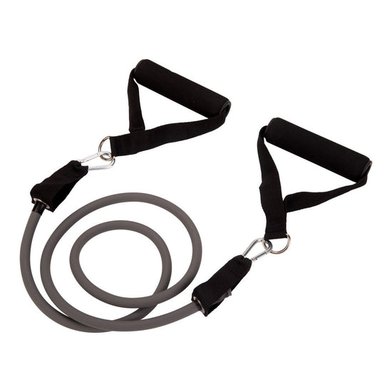 The Exercise Tube set consists of various sturdy and durable fitness elastics. You can perform numerous exercises with dozens of different resistance levels, by using different bands at the same time.
