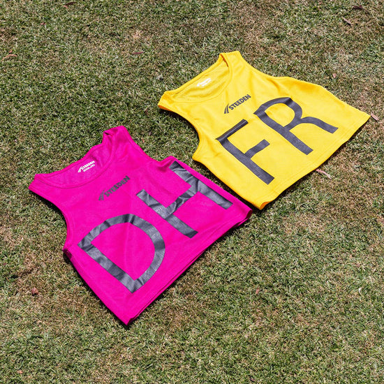 Bright pink, lightweight and breathable, these bibs clearly identify the Dummy Half during training or games, helping players learn their position and teammates adapt around them.